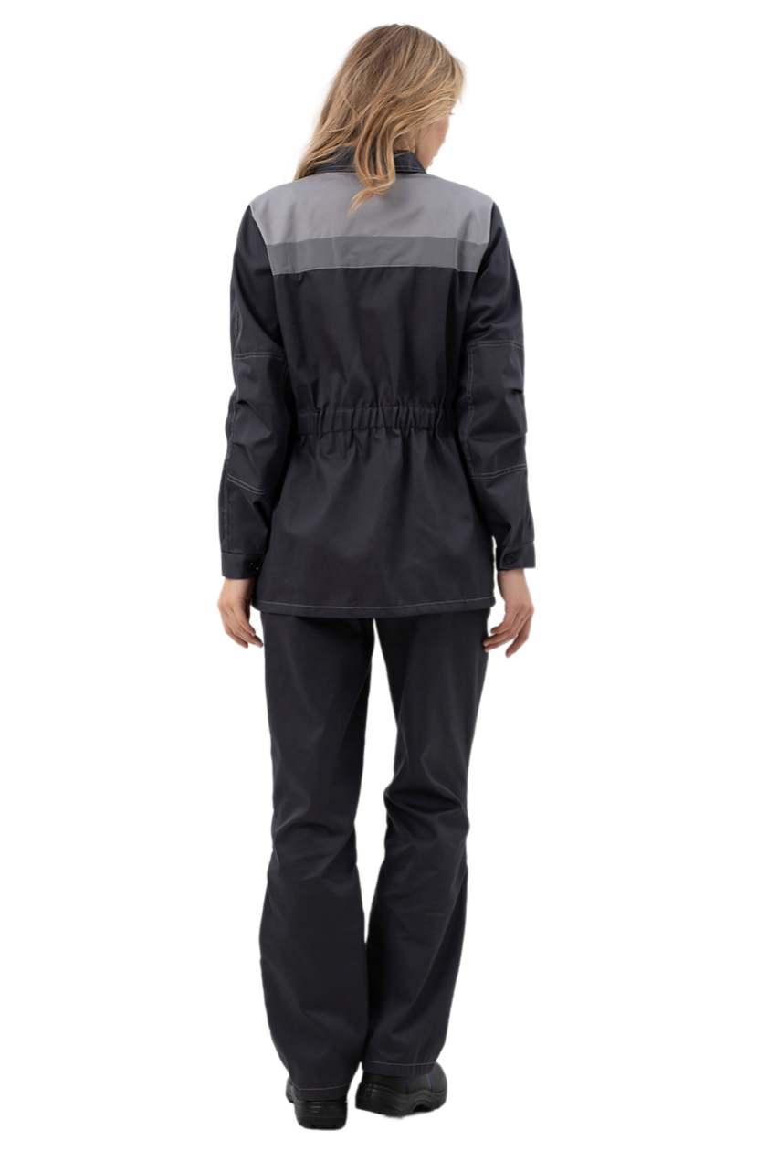 Костюм с лентой ФИО что позволяет идентифицировать костюм работника. Усилительные накладки для защиты костюма от истирания: в зоне локтя и колена на брюках.